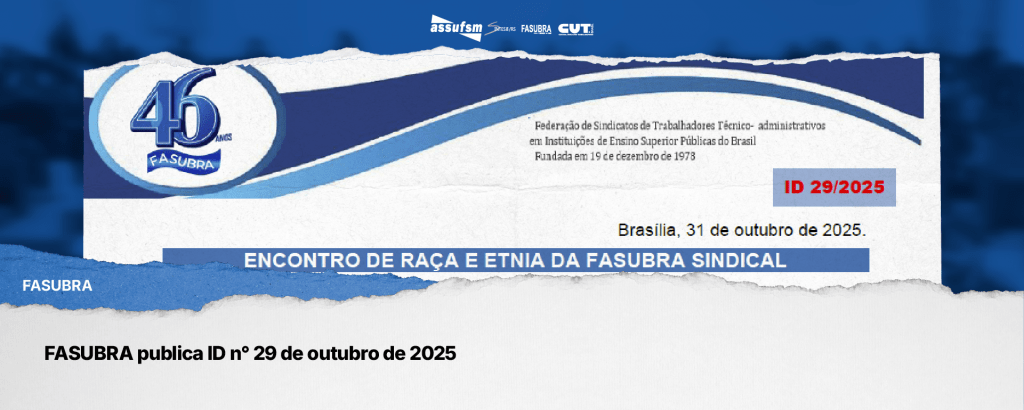 ⚠ No dia 31 de outubro, a Fasubra publicou, o Informe de Direção (ID) n° 29 de outubro de 2025. 📍 No documento, a Federação traz orientações sobre o Encontro de Raça e Etnia da FASUBRA, que ocorrerá de 22 a 24 de novembro em Brasília; informes da 4ª Conferência Nacional dos Direitos das pessoas LGBTQIA+ que […]